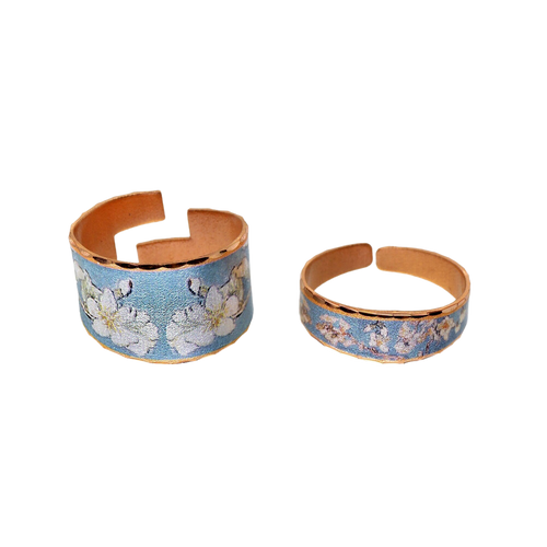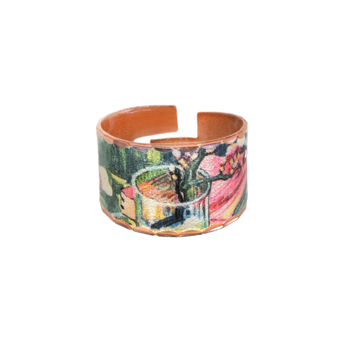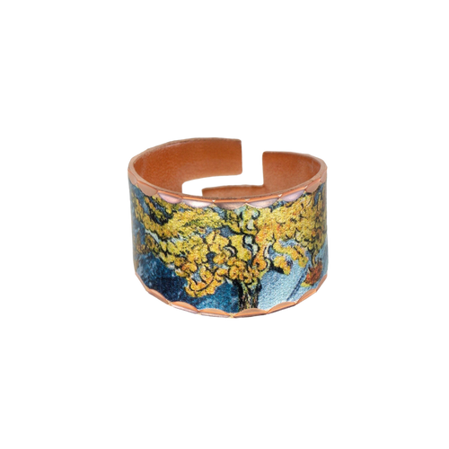 Copper Art Ring - Van Gogh Almond Blossoms Ring Vibrant Color