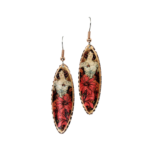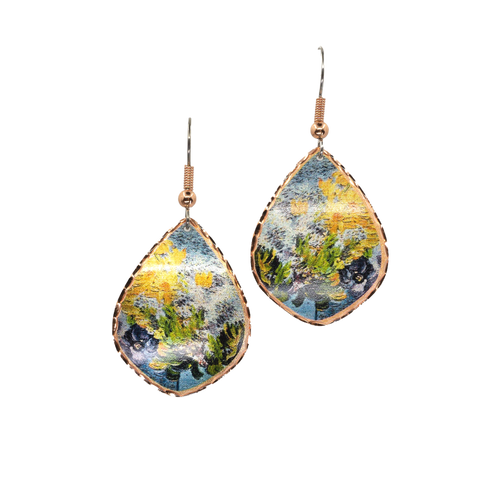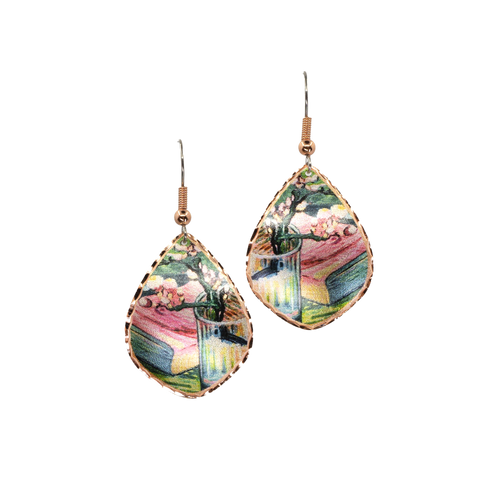 Copper Art Earrings - Van Gogh Almond Blossoms Vibrant Color