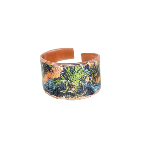 Copper Art Ring - Van Gogh Vase with Lilacs, Daisies & Anemones