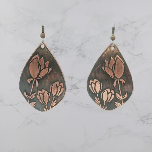 Part of my Flora & Fauna Collection & available in a patina or antique copper finish. Made of solid copper, each design is available in Cuffs, Rings & Earrings. Stunning detail in this beautiful collection with unique etched designs on solid copper with a rustic antique copper finish. 100% copper, nickel & lead-free. Sealed with professional E-coating which will protect the pieces from oxidation, providing long-lasting wear & durability. Designed exclusively by Urbanrose, a beautiful collection you won't find anywhere else.
